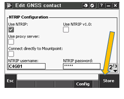 The desired network connection previously setup will be inserted. (The NTRIP username and Network Connection and APN are example and likely NOT to be correct.)